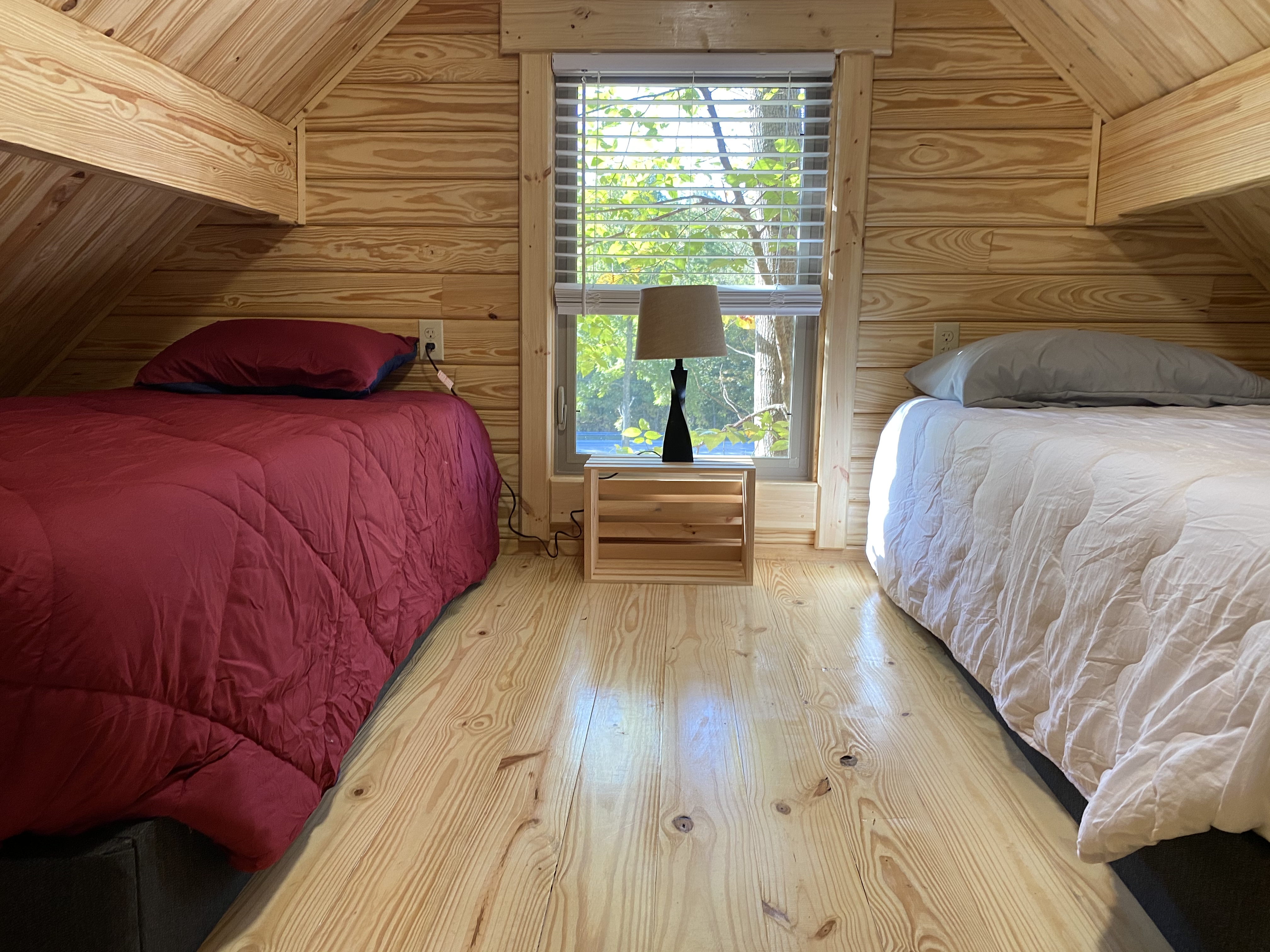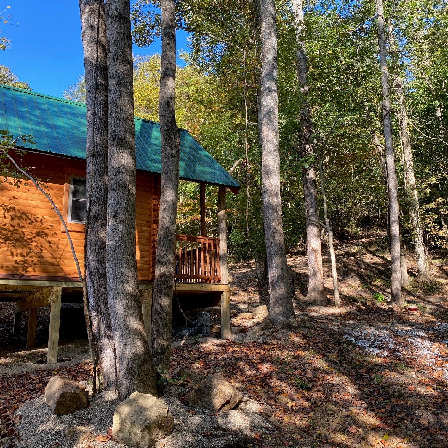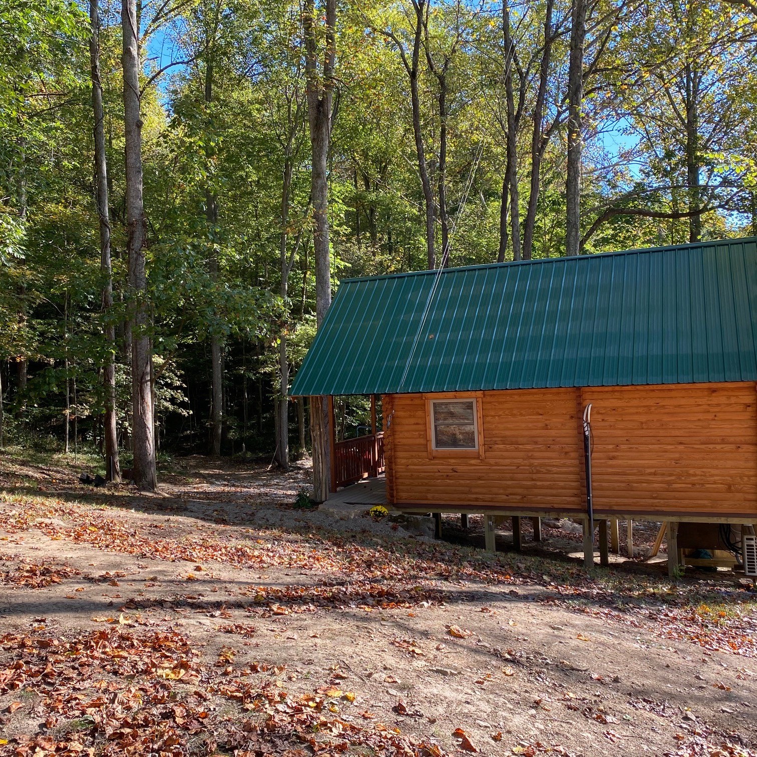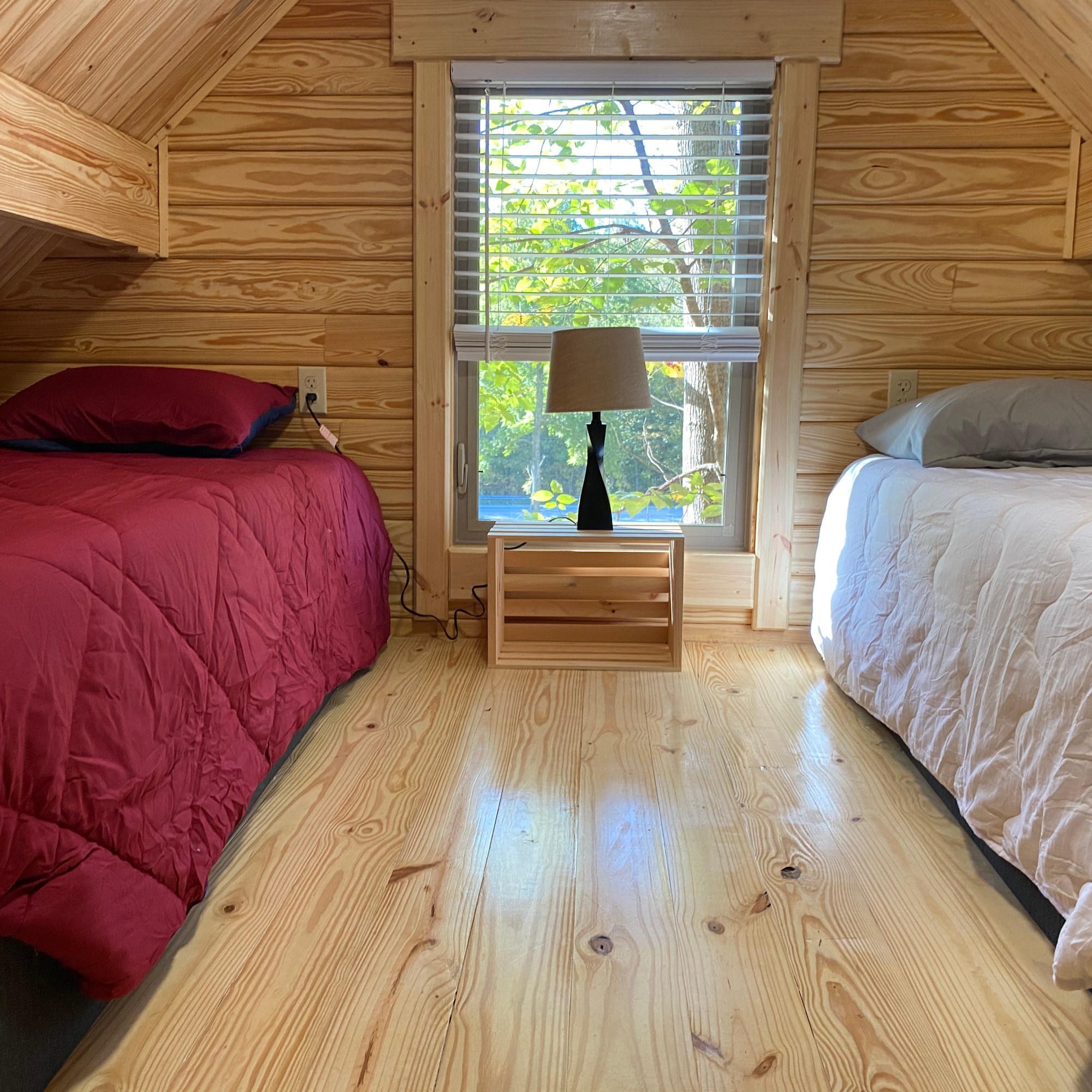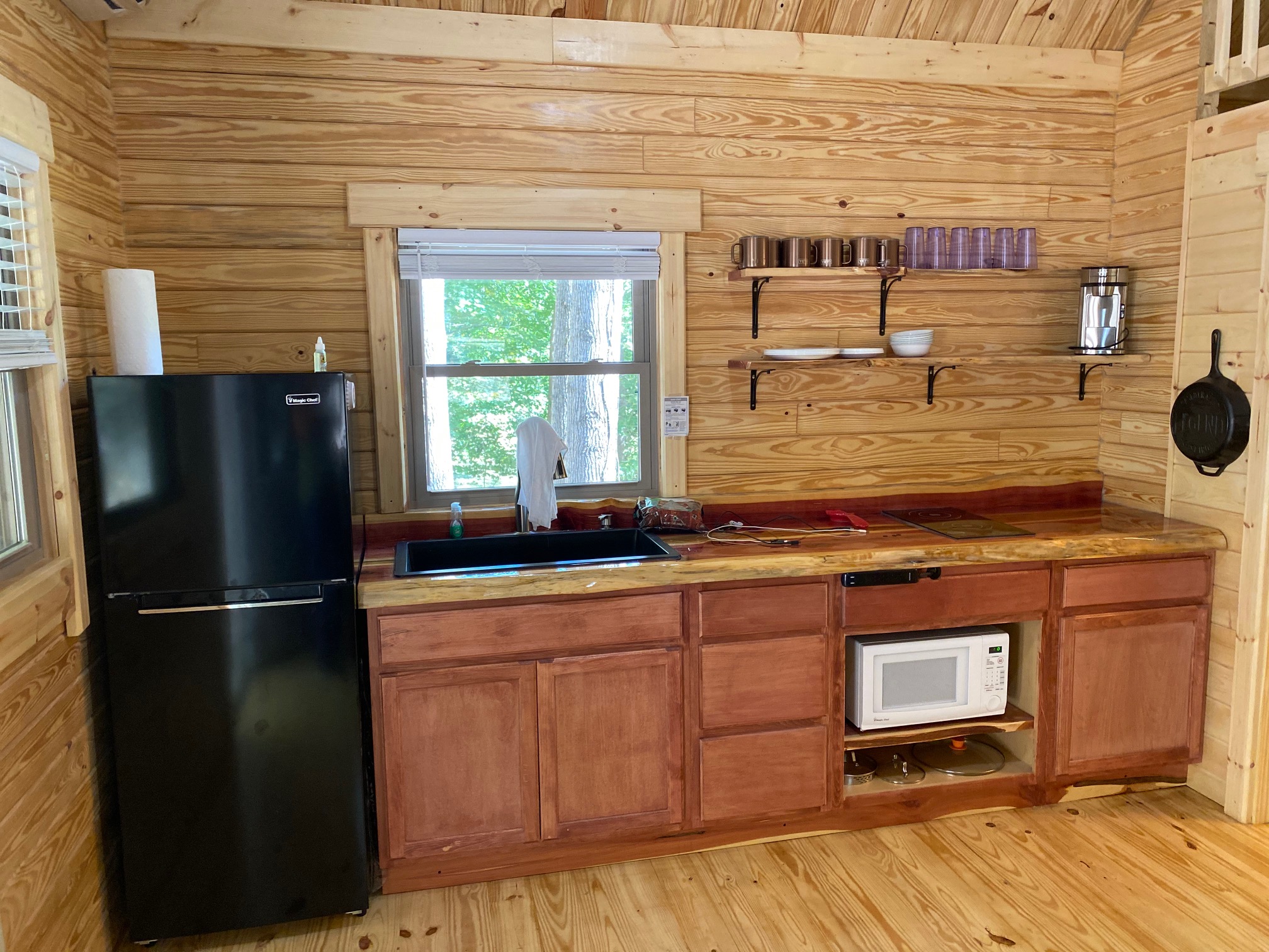This 427 square foot cabin contains 1 bedroom and 1 loft with access to 55 acres of woodlands and 1.5 miles of rugged hiking trails. Catch an evening’s meal starting June 22, 2021 at our 1/4 acre spring-fed fishing hole. Please see our Onsite Information and Policies page for more information.