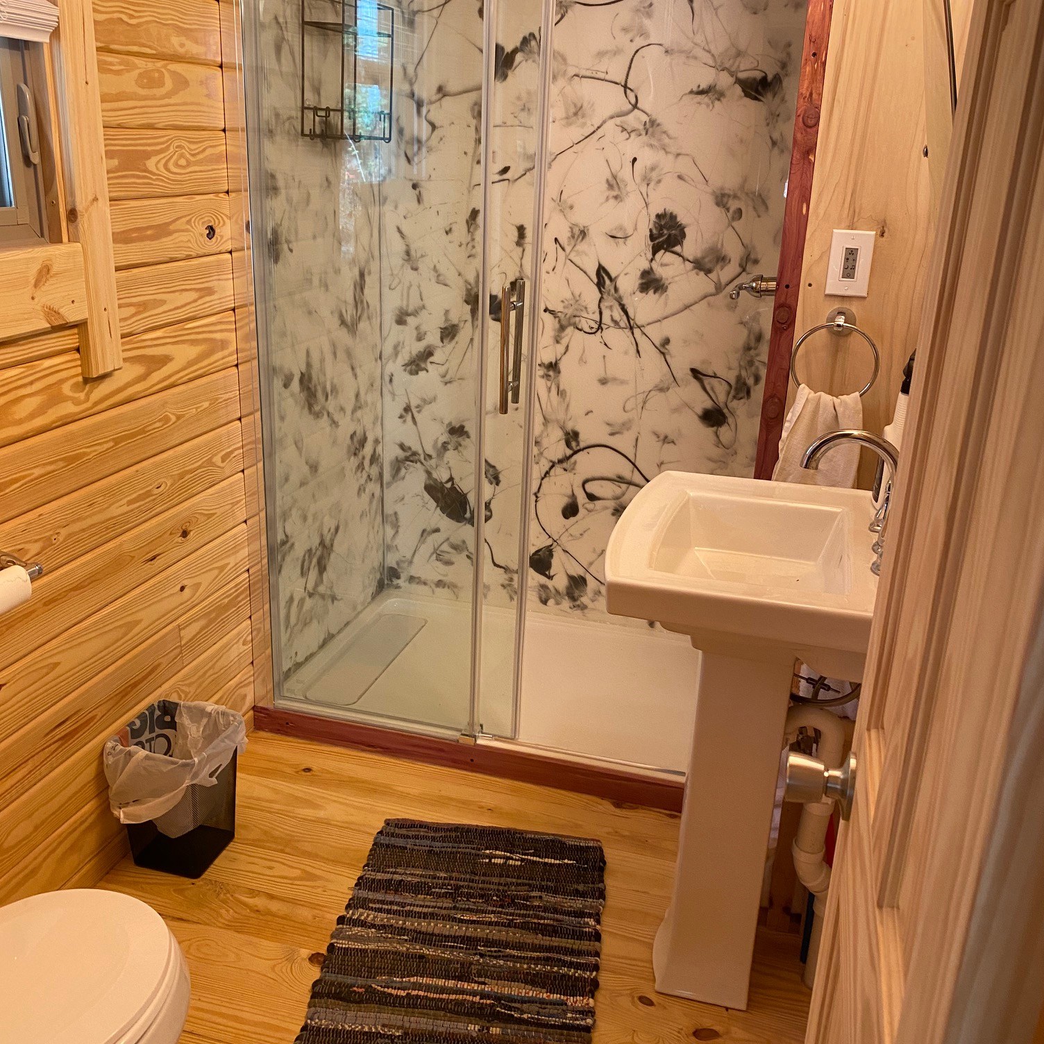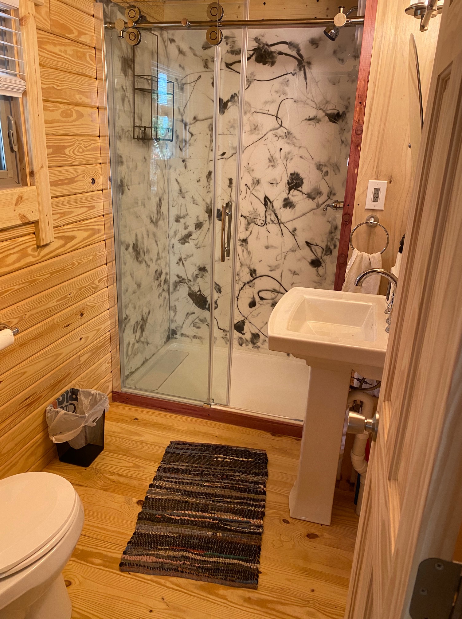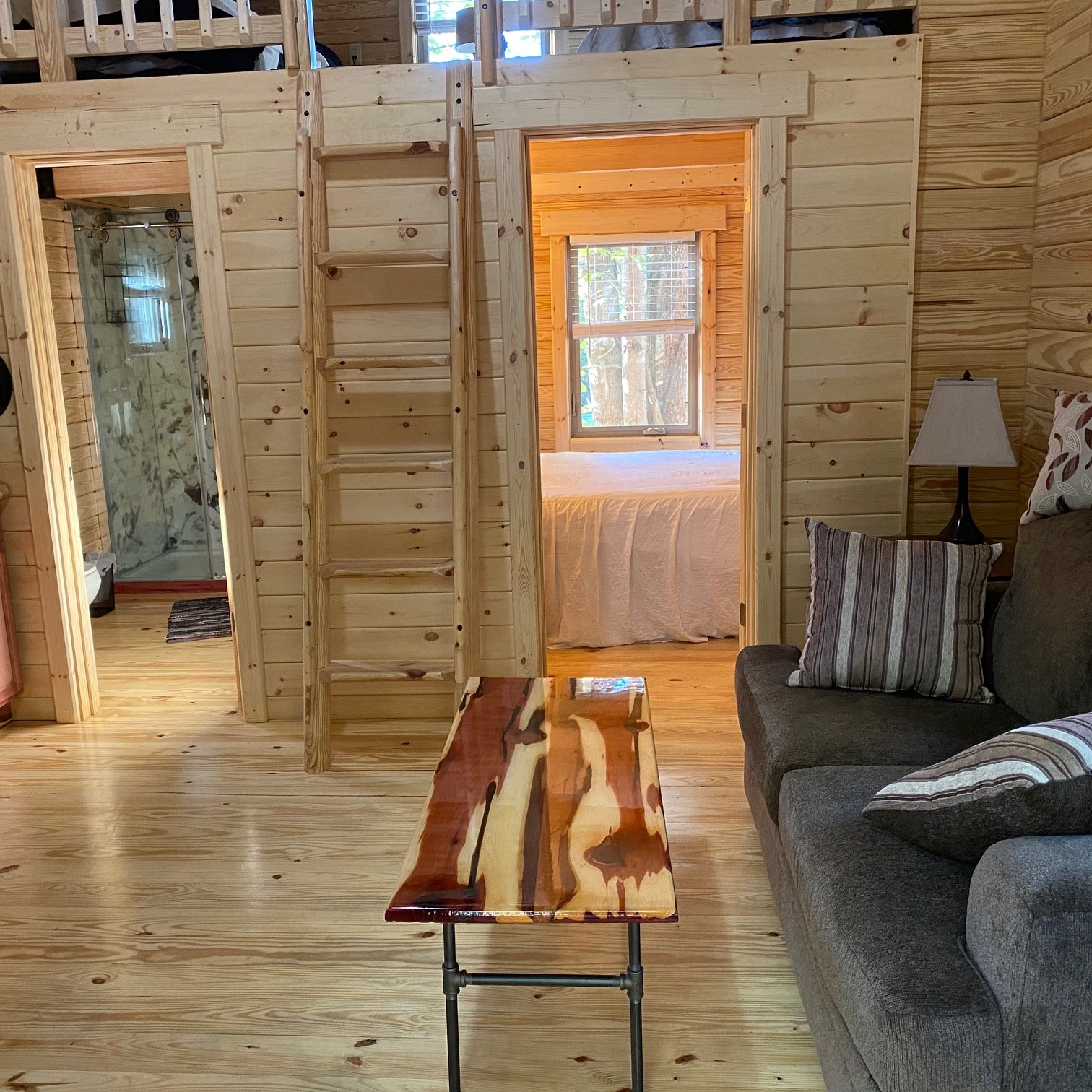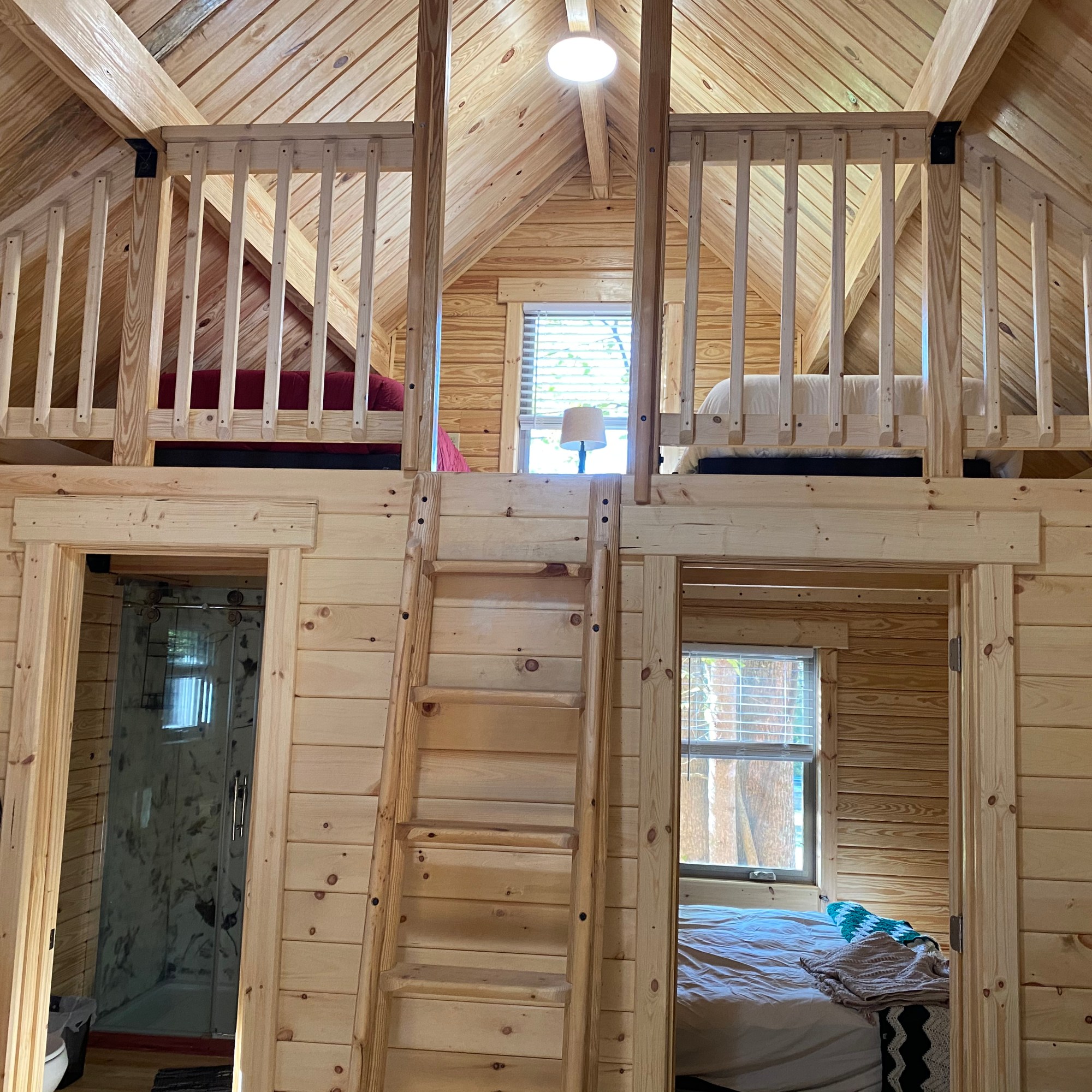 This 427 square foot cabin contains 1 bedroom and 1 loft with access to 55 acres of woodlands and 1.5 miles of rugged hiking trails. Catch an evening’s meal starting June 22, 2021 at our 1/4 acre spring-fed fishing hole. Please see our Onsite Information and Policies page for more information.